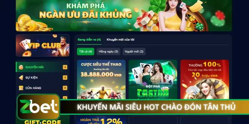 Khuyến mãi nhà cái Zbet đang là chủ đề hot nhất trong cộng đồng cá cược trực tuyến tại Việt Nam hiện nay. Với hàng loạt ưu đãi hấp dẫn từ thưởng nạp đầu lên đến 20 triệu đồng, hoàn trả liên tục và các chương trình đặc biệt dành riêng cho thành viên, Zbet mang đến cơ hội tuyệt vời để người chơi gia tăng vốn cược và trải nghiệm giải trí đỉnh cao.
