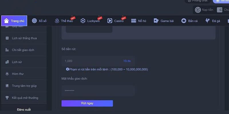 Để rút tiền tại Net88, bạn bắt đầu bằng việc đăng nhập tài khoản và chọn mục “Rút tiền” trong phần giao dịch. Hệ thống sẽ yêu cầu bạn nhập số tiền muốn rút và chọn phương thức, chẳng hạn như chuyển khoản ngân hàng hoặc ví điện tử. Sau khi xác nhận, bạn cần chờ hệ thống xử lý, thường mất từ 15 phút đến 1 giờ. Quy trình này bao gồm việc kiểm tra lịch sử giao dịch để đảm bảo không có hoạt động đáng ngờ, giúp bảo vệ tài khoản của bạn.